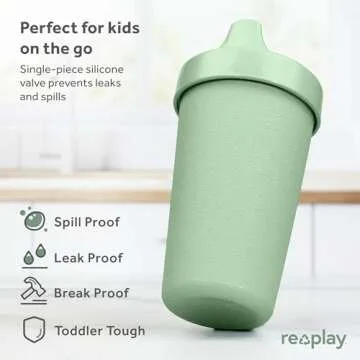 Re-Play Made in USA 10 Oz. Sippy Cups for Toddlers, Pack of 4 - Reusable Spill Proof Cups for Kids, Dishwasher/Microwave Safe - Hard Spout Sippy Cups for Toddlers 3.13" x 6.25", Cactus Flower