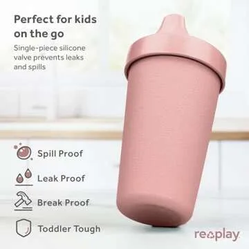 Re-Play Made in USA 10 Oz. Sippy Cups for Toddlers, Pack of 4 - Reusable Spill Proof Cups for Kids, Dishwasher/Microwave Safe - Hard Spout Sippy Cups for Toddlers 3.13" x 6.25", Desert Roses