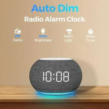 REACHER Auto Dimmable Alarm Clock Radio for Bedrooms, Improved Reception FM Radio, 9 Color Night Light, 0-100% Dimmer, 7 Wake Up Sounds, Sleep Timer, Small Digital Clock for Bedside