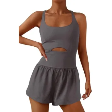 Show more Meet your new favorite outfit, the ReachMe Women's Running Onesie Workout Romper. Made for the active and stylish woman, this romper combines comfort, practicality, and eye-catching design, making it perfect for any occasion. Crafted from lightweight, breathable, and skin-friendly fabric, it feels soft against your skin while allowing for maximum movement. The tight-fitted cutout top supports while offering a flattering silhouette, and the relaxed shorts give you the freedom to engage in any workout or run errands with ease.