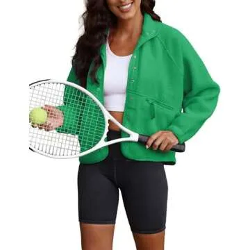 ReachMe Womens Sherpa Jacket Casual Lapel Button Down Cropped Fuzzy Fleece Jackets Long Sleeve Winter Coats with Pockets(2 Green,S)