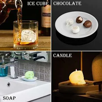 Unleash your creativity with the Readaeer Large Silicone 3D Skull Shape Molds, designed for both novice and experienced crafters. These molds come in six unique skull designs, providing endless possibilities for creating stunning resin art, delectable chocolates, charming candles, and artisanal soaps. Made from high-quality silicone, these molds are not only durable but also flexible, ensuring easy release and preventing damage to your finished creations.