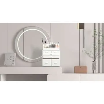 READAEER Makeup Organizer – 3 Piece Cosmetic Storage Case with 6 Drawers in White