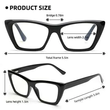 Show moreExperience a perfect blend of style and functionality with the Reading Glasses Women Readers Blue Light Blocking Eye Glasses. This stunning three-pack features trending cat-eye designs, available in chic colors such as black, brown, and tortoise, each uniquely crafted to elevate your reading experience while protecting your eyes. Superior Blue Light Blocking Technology ensures that harmful rays from screens are effectively filtered, reducing fatigue and strain during prolonged use. Made from high-quality PC material, these reading glasses are not only lightweight but also extremely durable, catering to all-day comfort. Whether you're at work, reading a book, or scrolling through your phone, these glasses provide a clear lens experience with no distortion, making them an essential accessory for modern lifestyles.