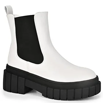 Show moreStep into elegance and comfort with the READYSALTED Women's Ankle Low Heel Platform Chunky Sole Chelsea Slip On Boots. Perfectly crafted for the modern woman, these boots blend chic aesthetics with everyday functionality, making them an essential addition to your wardrobe. Designed for versatility, they can effortlessly complement any outfit, whether you're heading to the office or enjoying a night out. With a stylish chunky sole that not only elevates your stature but also provides excellent support, these boots boast a timeless Chelsea style that suits various occasions. Slip them on with ease thanks to their elastic side panels and low-heel design, ensuring all-day wear without sacrificing comfort.