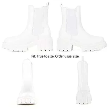 READYSALTED Women's White Chunky Lug Sole Platform Chelsea Boots (KANDY-WH,US8)