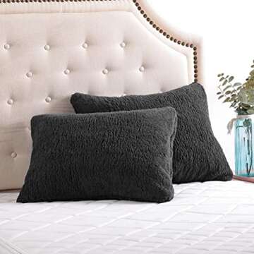 The pillow shams are made from ultra-soft fabric that resembles sherpa material, providing a cozy feel.