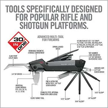 Show moreThe Real Avid Gun Tool Pro is the ultimate companion for firearm enthusiasts and professionals alike, expertly designed to meet all your essential maintenance needs. This 30-in-1 multitool is perfect for working on both rifles and shotguns, ensuring you have everything you need at your fingertips. With a sturdy, compact design, this versatile tool combines functionality and ease of use, making it a must-have for gun owners who appreciate a well-maintained firearm.