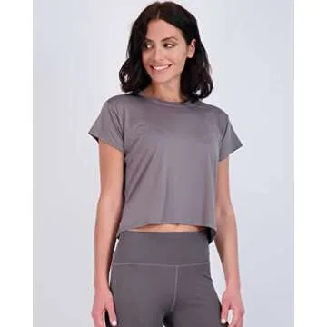 Real Essentials 5 Pack: Women's Dry Fit Crop Top - Short Sleeve Crew Neck Stretch Athletic Tee (Available in Plus Size)