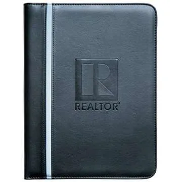Show morePresenting the ultimate companion for real estate professionals: the Real Estate Agent Portfolio. Crafted from high-quality black leatherette, this portfolio is designed to make you stand out with its sleek, debossed theREALTOR logo that exudes professionalism and style. The subtle color strip along the side adds a refined touch, ensuring that you convey an upscale image in every important meeting.