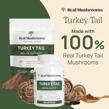 Real Mushrooms Turkey Tail Powder - Organic Mushroom Supplement with Potent Extract for Gut, Energy, Brain, Immune Support Vegan Powder, Non-GMO, 100 Servings