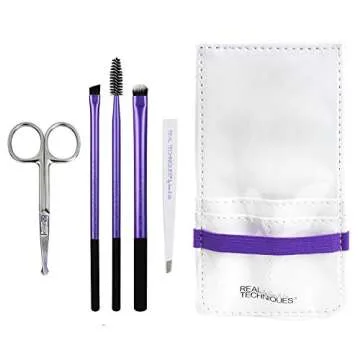 Real Techniques Cruelty Free Brow Set - Scissors, Tweezers, Brushes & Case