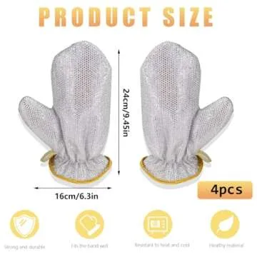 Realand 2 Pairs Dish Sponge Dishwashing Gloves, Non Scratch Dish Scrubber Dish Gloves, Waterproof Kitchen Scrub Sponges for Cleaning Dishes Pots Pans