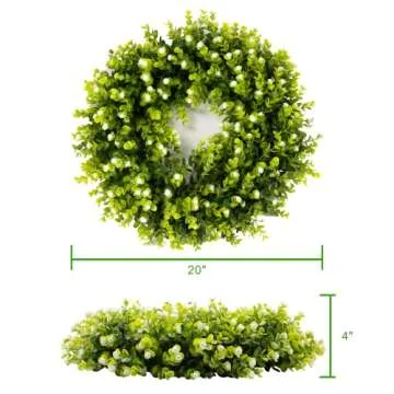 REALIFE 20" Boxwood Wreath Decorations for Home Artificial Wreath for Front Door Wreath with Gypsophila for Valentine Thanksgiving Wedding Party Decorations Wreath Outdoor and Indoor Fall Wreath