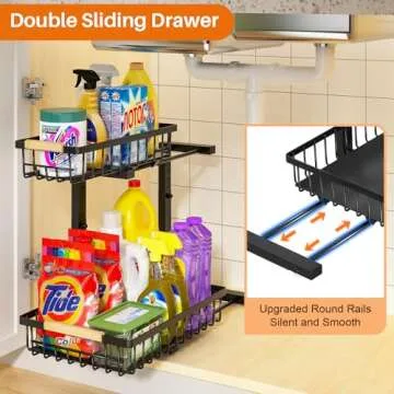 REALINN Under Sink Organizer, 2 Pack Height Adjustable Under Sink Organizers and Storage, 2 Tier Pull Out Drawer Cabinet Storage for Kitchen Bathroom