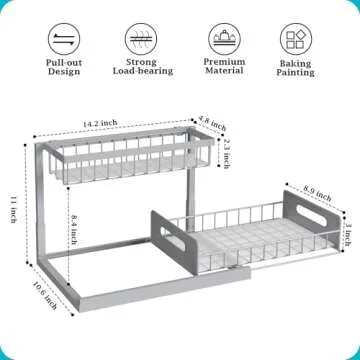 REALINN Under Sink Organizer, Pull Out Cabinet Organizer 2 Tier Slide Out Sink Shelf Cabinet Storage Shelves, Storage for Kitchen Bathroom, Grey, 2 Pack