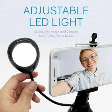 Show moreEnhance your content creation with the Realm Selfie Content Creator Studio (Model: RLMS4BK), a versatile companion designed specifically for live streaming, selfies, vlogging, and video chatting. This all-in-one studio solution combines a powerful LED ring light with a sturdy, collapsible tripod stand and a universal phone cradle, ensuring you can produce professional-grade content anytime, anywhere. The LED ring light features three adjustable brightness levels, allowing you to achieve the perfect lighting for every shot, whether you’re filming a tutorial or capturing moments for social media.