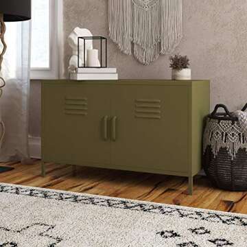 Show moreInnovate your space with the REALROOMS Systembuild Evolution Shadwick 2-Door Metal Locker Accent Cabinet. This striking piece combines functionality with modern aesthetics, providing a unique storage solution that fits seamlessly into any room. Its vibrant olive green, powder-coated metal finish not only makes it a trendsetting accent but ensures durability and easy care. Perfect for those looking to enhance their decor while keeping their essentials organized, this cabinet transforms clutter into a curated collection with style and practicality.