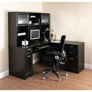This desk is available in a classic espresso finish, which adds elegance to any office setting.