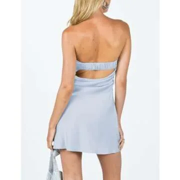Realtix Womens Satin Silk Backless Strapless Mini Dress Sexy Low Back Tube Club Party Dress for Women Blue