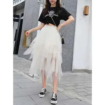 Show more Introducing the **Reaowazo Tulle Skirt**, the ultimate blend of elegance and versatility for any wardrobe. Crafted from **100% polyester**, this stunning skirt features multiple layers of delicate mesh tulle paired with a sleek satin lining, delivering a lightweight and breathable experience that feels luxurious against your skin. The **high elastic waist** design not only provides a comfortable fit—accommodating waist sizes from **23.62" to 35.43"**—but also enhances your silhouette, making it a go-to piece for both casual outings and special occasions. Available in a classic white, this skirt not only matches effortlessly with various tops, but it also transforms any outfit into a **fashion statement**.