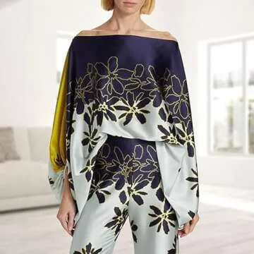 REASERAL Womens Fall Loose 2 Piece Outfits Off Shoulder Printed Long Sleeve Casual Going Out Wide Leg Pants Set