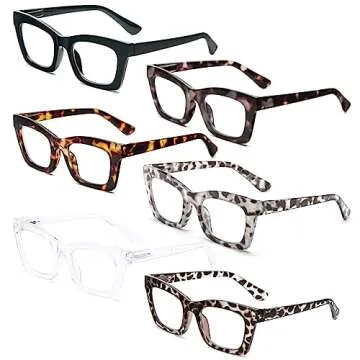 REAVEE 6 Pack Oprah Style Reading Glasses for Women Men Blue Light Blocking, Cute Square Computer Readers with Spring Hinge, 2.0