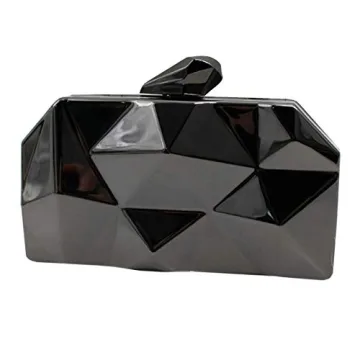 Reberomantic Women Lattice Pattern Metal Handbag Chain Geometric Evening Clutch Purse in Gun-Color