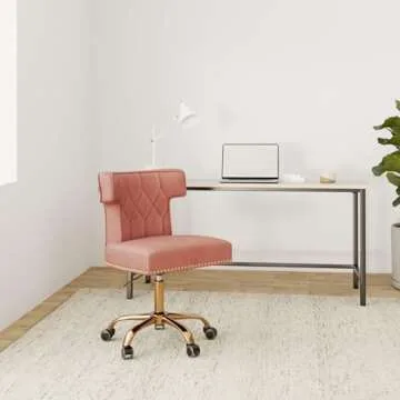 Recaceik Velvet Home Office Chair, Modern Adjustable Swivel Desk Chairs with High Back 360 Degree Castor Gold Wheels for Living Room/Bedroom/Office (Pink)