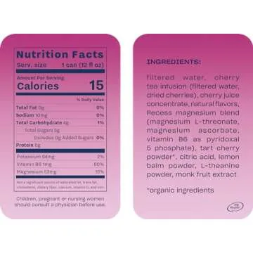 Show moreExperience the ultimate relaxation with the Recess Mood Magnesium & Adaptogen Drink, available in a delightful Black Cherry flavor. This innovative beverage is carefully crafted to help you unwind while enjoying a crisp, refreshing sip. Brewed with real dried cherries, it delivers a not-too-sweet flavor that stands out in the world of sparkling waters. The unique combination of functional ingredients ensures each can is not just a drink but a wellness companion, designed to soothe your mind and body.