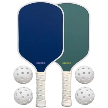 Show moreUnleash the excitement of pickleball with the Recess Pickleball Starter Set, an exceptional choice for beginners who are ready to dive into this exhilarating sport. This premium set comes complete with two beautifully designed paddles in vibrant blue and green, each crafted to not only look appealing but to significantly enhance your gameplay. The paddles are engineered with a lightweight honeycomb core and a robust fiberglass surface, enabling players to achieve optimal control and power with every strike.
