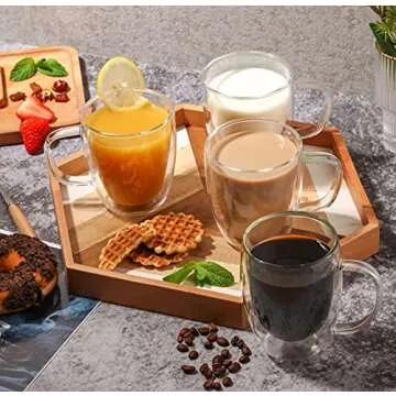 Show moreDiscover the exquisite Rechano 4 Pack Insulated Coffee Mugs, the quintessential blend of style and functionality designed for true coffee aficionados. Each cup boasts a generous capacity of 13.5oz (400ml), making them perfect for savoring your morning brew or an evening cup of tea. Crafted with double-wall glass, these mugs maintain the temperature of your drink, ensuring that your coffee stays hot without the risk of burns while holding the mug. The elegant design accentuates your drink while providing a crystal-clear view of your favorite beverages, making each sip a delightful experience. Durable yet sophisticated, these mugs promise longevity, and their practical handle ensures a comfortable grip, even when filled with hot liquid.
