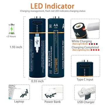 Rechargeable AA Batteries Uzone Lithium Ion 1.5V 2600mWh AA Recharge Battery with USB Charger, 4-in-1 USB Type C Charging Cable, Over 1200 Cycles,Storage Cases, 1.5H Quick Charge AA Battery Pack of 4