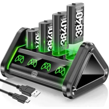 Show more Introducing the OIVO Rechargeable Batteries & Charger – a revolutionary power solution designed specifically for Xbox Series X|S, Xbox One, Xbox One S, Xbox One X, and Xbox Elite controllers. Say goodbye to the hassle of non-rechargeable batteries and embrace the convenience offered by this exceptional product. Each package includes four robust 3840mAh batteries that can power your game for long hours without interruption. With a fast charging capability, you can recharge these batteries in just 3-4 hours, providing you with a remarkable battery life of 15-20 hours per charge.