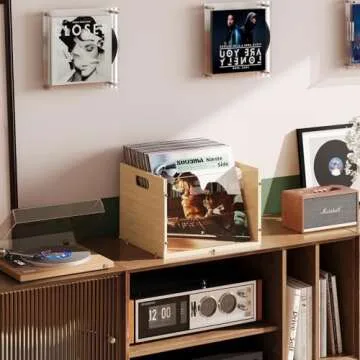 Show more Introducing the Record Album Storage Crate – a perfect blend of style, functionality, and versatility for vinyl enthusiasts and beyond! Crafted from a combination of sturdy acrylic and eco-friendly bamboo, this multifunctional storage box is specifically designed to securely store your precious vinyl records while enhancing your home décor. Hold up to 65 vinyl records effortlessly with this spacious storage solution that not only protects your albums from wear and tear but also makes it easy to locate your favorites at a glance.