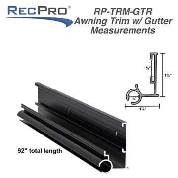 RecPro RV Awning Trim with Gutter | 92" Length | Aluminum | Made in USA (2 Trim Pieces, Black)