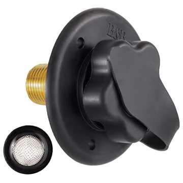 RecPro RV City Water Fill Inlet | Black | Optional Hose Elbow and or Gasket Seal | Flange Brass with Check Valve | Camper | Trailer | Marine (No Hose Elbow, No Seal)