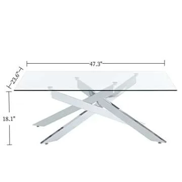 Rectangle Modern Coffee Table, Tempered Glass Top and Metal Tubular Leg, 47.3”Lx23.6”Wx18.1”H, Silver