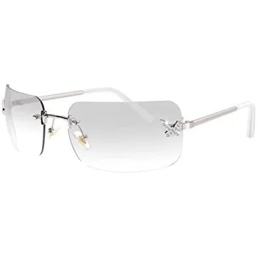 Show moreStep into the realm of retro fashion with Rmerom's stunning Y2K Rectangle Sunglasses. These stylish rectangular sunglasses are designed to make you stand out, combining both elegance and a playful twist. With a frameless rectangular design, they perfectly complement your face shape while providing a comfortable fit thanks to their gently curved shape. The shiny metallic legs enhance your look, while the whimsical little butterfly accents on the lenses add a unique charm that captures the essence of Y2K style.