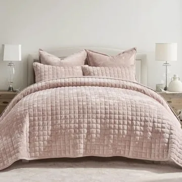 RECYCO Luxury Velvet Quilt Queen Size Set - Ultra Soft, Lightweight, Elegant & Washable with Pillow Shams in Rose Pink