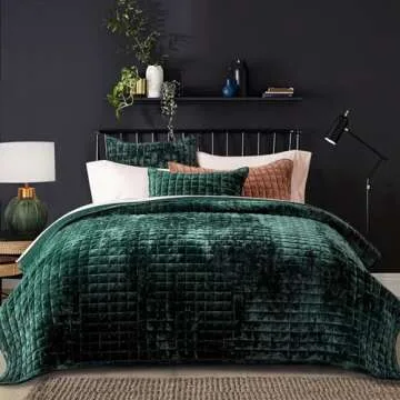 Show moreIntroducing the RECYCO Luxury Velvet Quilt Set, a stunning addition to your bedroom that redefines comfort and style. This luxurious bedding ensemble features an exquisite emerald green hue that captures attention with its rich sheen, providing a sophisticated touch to any decor. Crafted from premium velveteen fabric and boasting a plush, ultra-soft texture, it ensures that every night’s sleep is as cozy as it is stylish. The unique channel box stitch pattern not only adds a classic geometric element but also serves to secure the down alternative filling within, offering both durability and elegance. With its lightweight nature, this quilt set is perfect for use throughout all seasons, making it an ideal choice for a comprehensive bedding solution that stays comfortable year-round.