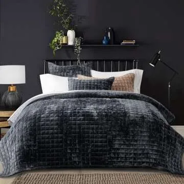 Show moreIntroducing the RECYCO Luxury Velvet Quilt Set, a stunning addition to your bedroom that radiates sophistication and elegance. This luxurious bedding set showcases a remarkable blend of style and comfort, crafted from premium velveteen that feels ultra-soft and plush against the skin. Available in a full queen size, this quilt set not only enhances your décor with its chic appearance but also offers versatile use for all seasons. With its unique channel box stitch geometric pattern, it adds dimension and sophistication, elevating your home’s aesthetic while providing unparalleled comfort.