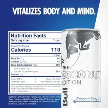 Discover the invigorating taste of the Red Bull Coconut Edition Energy Drink, a delightful fusion of exotic coconut and fruity blueberry flavors. Perfectly crafted to fuel your day, each 8.4 fl oz can contains an energizing blend of **80mg of caffeine**, **taurine**, and essential B-group vitamins (B3, B6, B12, and B5), which collectively contribute to your body's normal energy-yielding metabolism. Whether you're gearing up for a high-stakes gaming session, tackling a busy workday, or staying...
