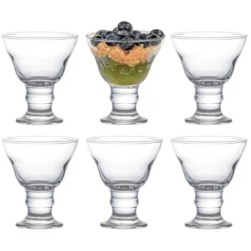 Show more Introducing the Red Co. Orion Classic Footed Dessert Cups, a stunning addition to your kitchenware that beautifully combines style and functionality. Crafted with meticulous attention to detail, these clear glass dessert bowls are not just elegant pieces; they are versatile tools for serving a variety of treats. Whether you're dishing out sumptuous ice cream sundaes, vibrant fruit salads, or luxurious homemade pudding, these bowls are designed to elevate your dessert game. Each cup holds a generous capacity of 8.5 fluid ounces (250 mL) and stands approximately 4.4 inches tall, making them the perfect size for individual servings of your favorite sweets.