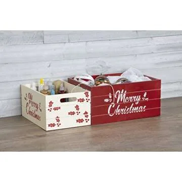Show moreIntroducing the Red Co. Set of 2 Red and White Decorative Nesting Wooden Merry Christmas Storage Crate Organizers, a delightful blend of style and functionality that's perfect for enhancing your holiday decor! These charming wooden crates have been designed with a rustic flair, showcasing vibrant Merry Christmas lettering that adds a festive spirit to any setting. Crafted from high-quality rubberwood, these crates not only boast durability and strength but also fit seamlessly into various home styles, whether you're sprucing up your living room or creating a cozy nook for children's books by the Christmas tree.