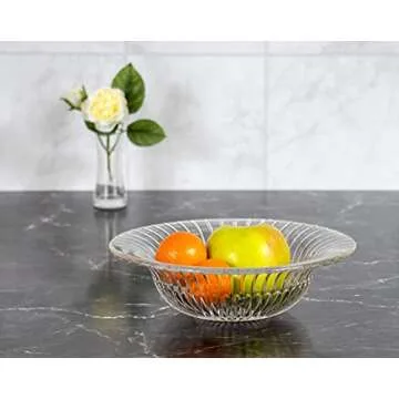 Red Co. Striped Crystal Decorative Glass Bowl for Dining Table Kitchen Decoration, Fruits Display, 9.5" x 2.75"