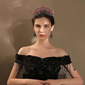 Show more Step into your royal destiny with the exquisite CIEHER Evil Queen Crown, a stunning piece designed for every girl who dreams of being treated like royalty. This enchanting crown is meticulously crafted from a blend of durable alloy, adorned with shimmering black rhinestones and vibrant red crystals, making it not only a luxurious accessory but also a striking statement piece. Measuring 5.9 inches in length and 2.36 inches in height, this crown is perfectly sized to fit comfortably without the need for adjustments. Whether you're capturing the perfect shot for Instagram or making a memorable entrance at any event, this crown will elevate your look, ensuring you feel as stunning as you truly are.