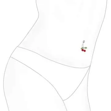 Red Crystal Double Cherry Branch Bar Navel Belly Ring for Women 316L Stainless Steel 14 Gauge
