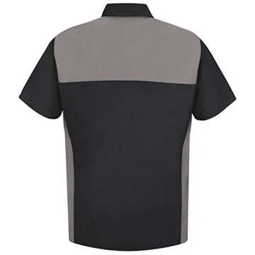 Red Kap Men's Standard Motorsports Shirt, Short Sleeve, Silver/Black, X-Large