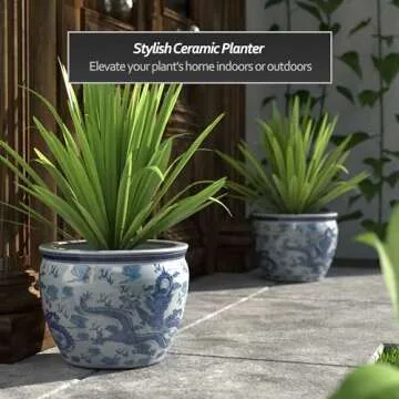 In a world filled with generic planters, the Red Lantern 14" Dragon Blue & White Porcelain Fishbowl Planter stands apart. While many competitors offer mass-produced garden pots, this plate’s handcrafted aspect means each piece is distinct and carries the essence of traditional artistry, a feature absent in factory-made alternatives. Its robust, high-temperature firing imparts a lasting quality that ensures it remains a cherished item for years to come, unlike cheaper models that may chip and fade. This planter not only serves a functional purpose but also acts as an art piece, merging form with function beautifully, an area where others often fall short.